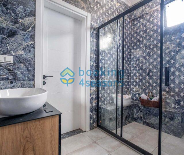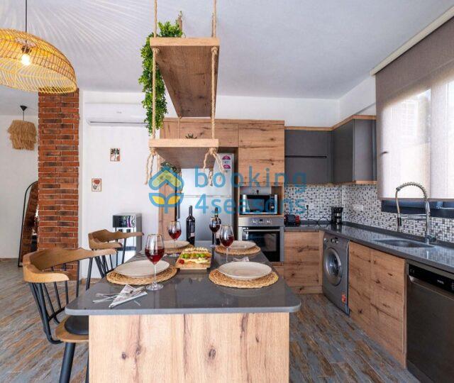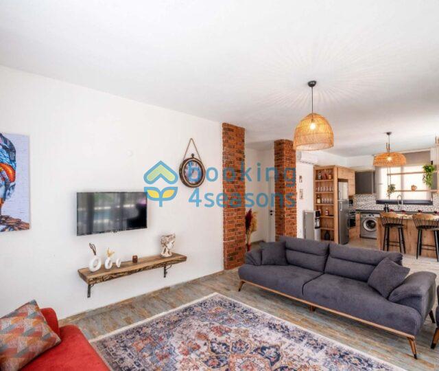 Fethiye merkeze 3 km mesafede, 2 yatak odalı villa 4 kişilik konaklama için uygundur.