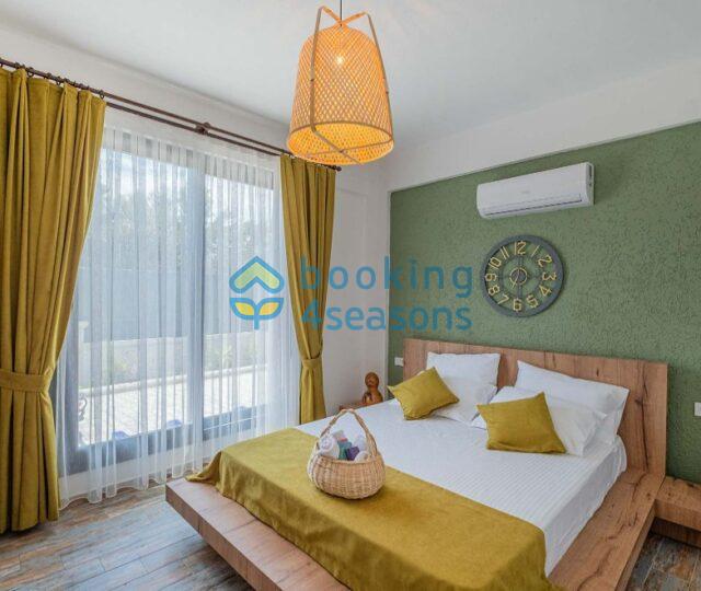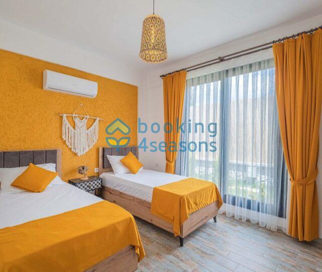 Fethiye merkeze 3 km mesafede, 2 yatak odalı villa 4 kişilik konaklama için uygundur.